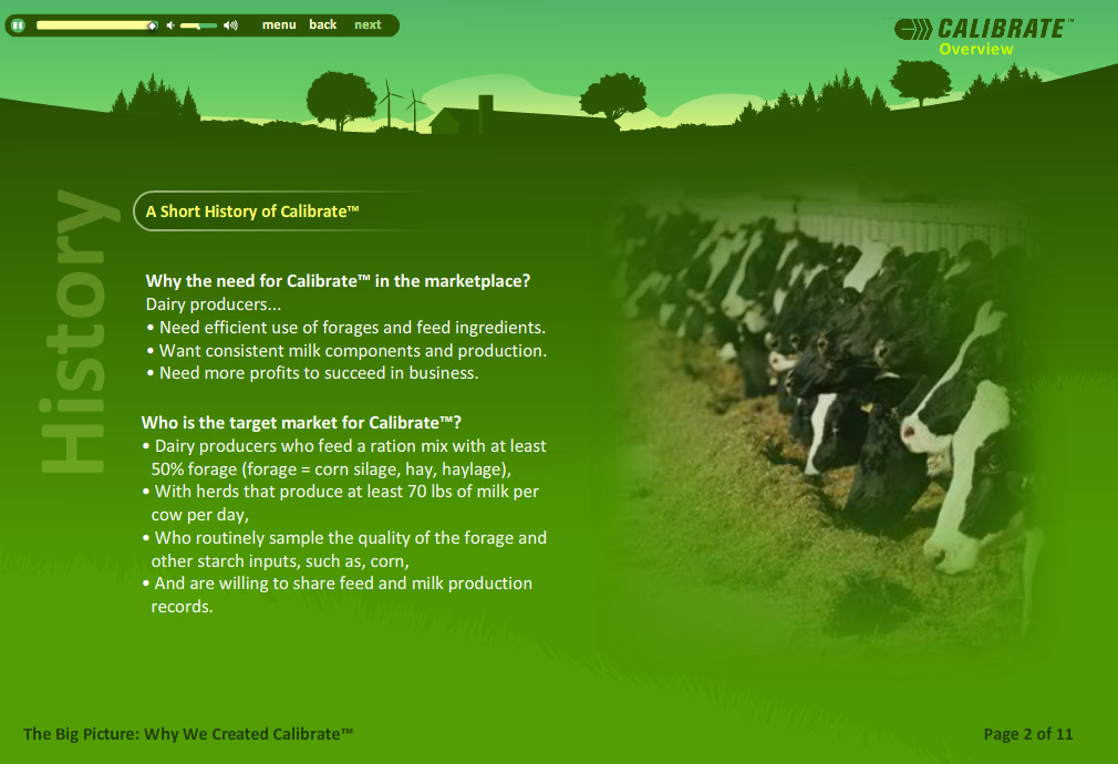 Web-based training curriculum to support Land O’Lakes new Synchronized Nutrition program aimed at providing consultative services to dairy producers